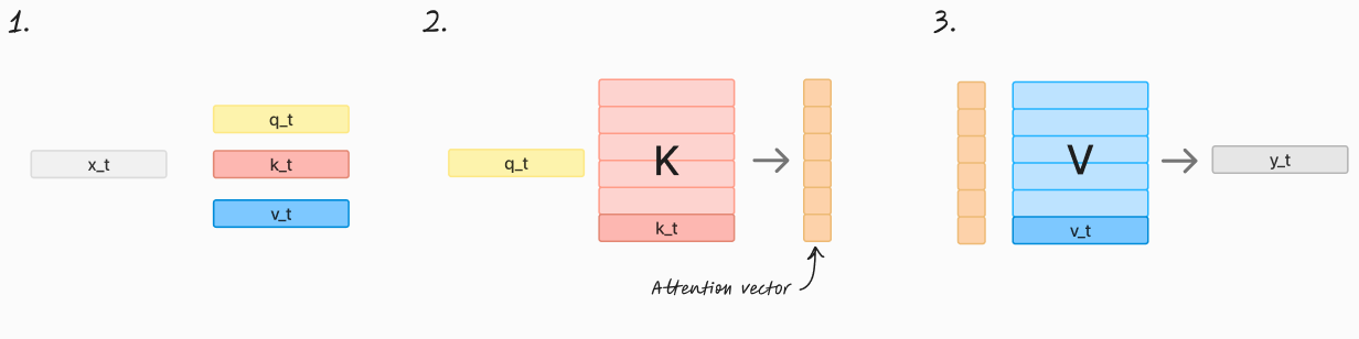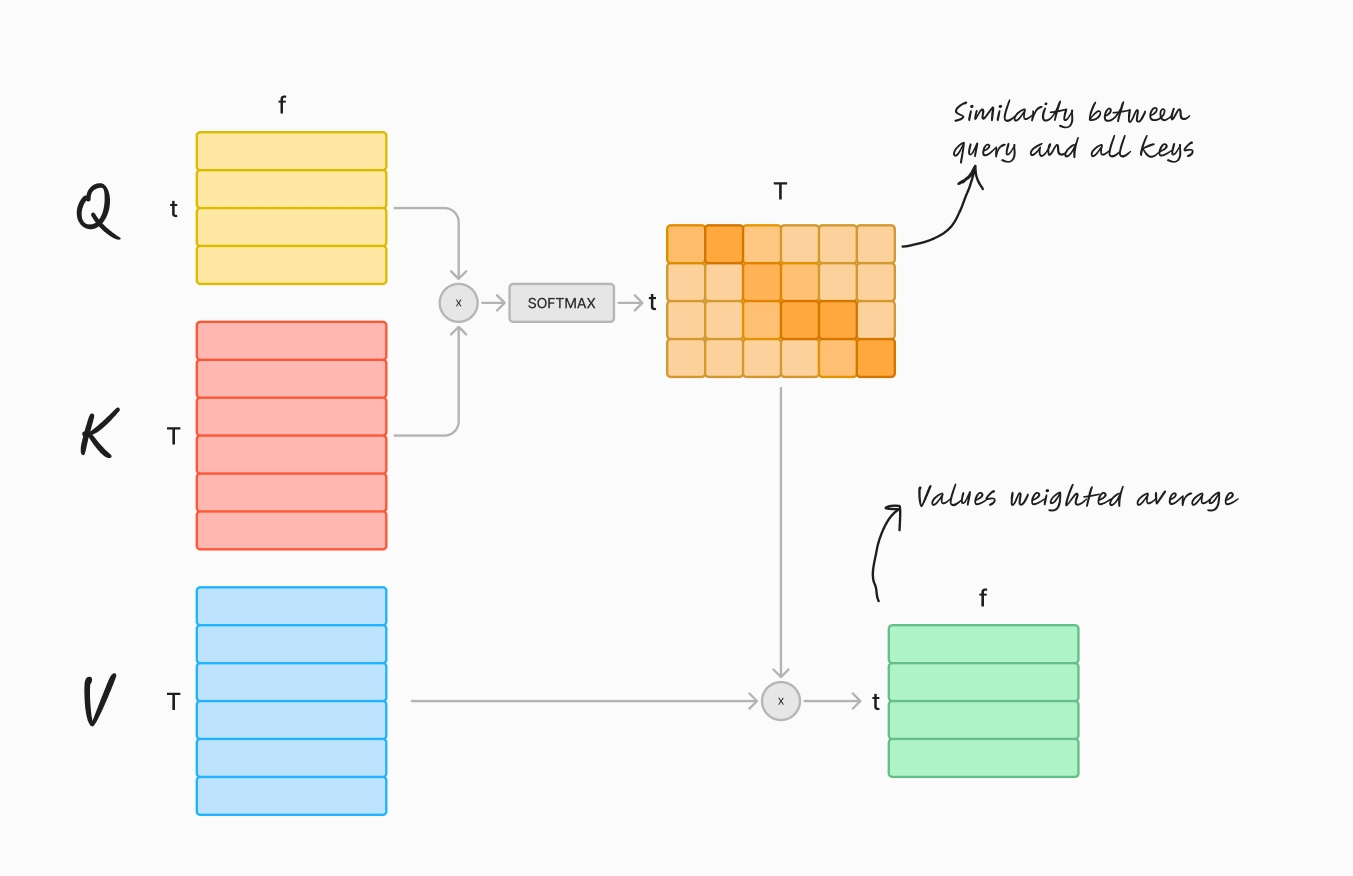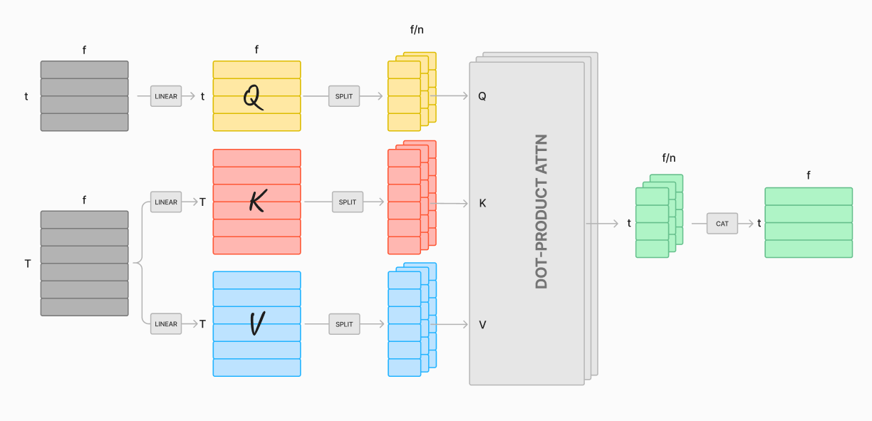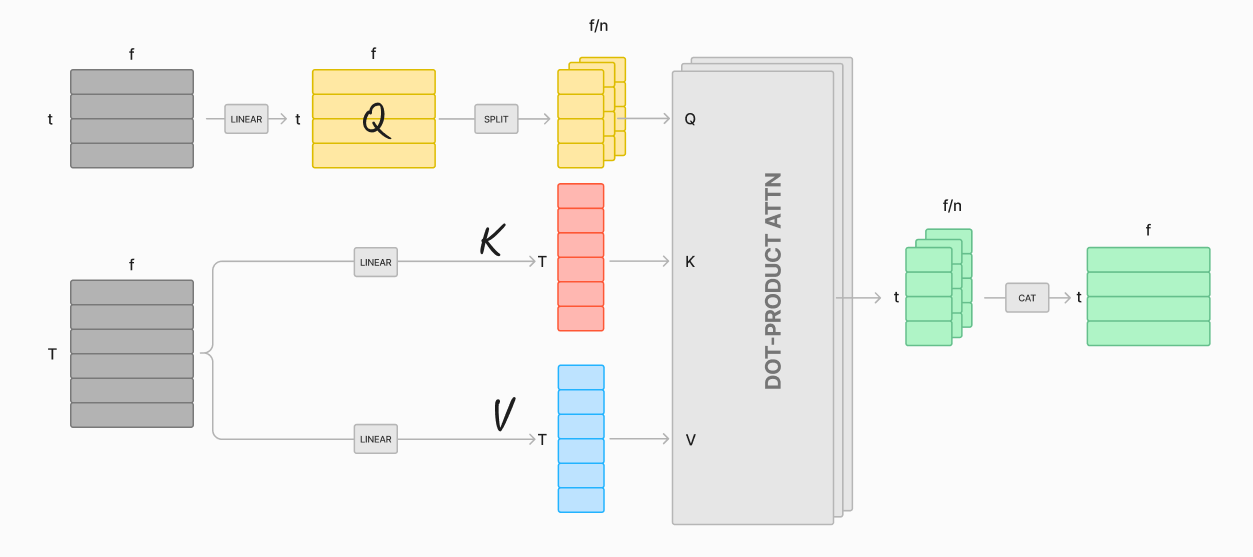 Hi! Today we have a very shallow post. We’ll go over the main “wrappers” around dot-product attention and we’ll call it a day 🙃 The main purpose is for me to have a repository of these structures that aligns wth my mental model of them1.
