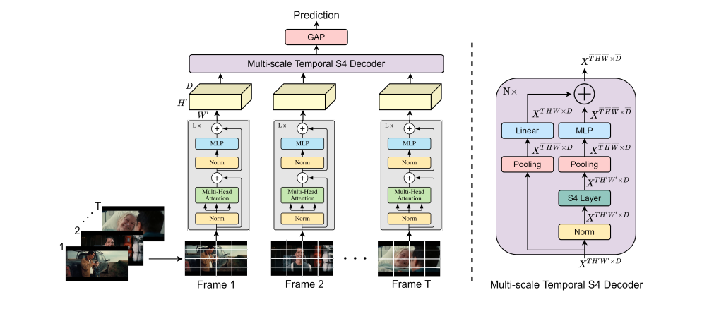 Apparently it also performs well at movie-clip classification: ViS4mer paper. [PERSONAL NOTE]: I like the idea of combining the power of a transformer for fixed-size type of data (frame) with the power of S4 of analyzing time series (sequence of frames).