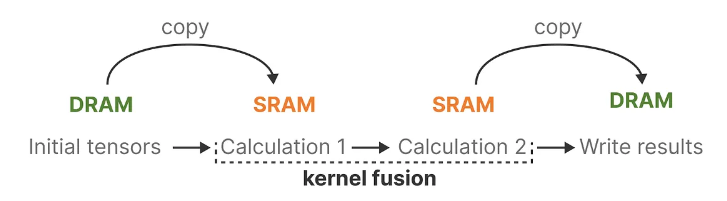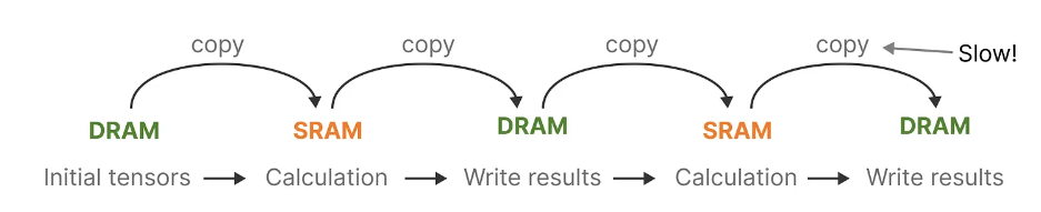 Flow of operations in a memory-aware fused CUDA kernel. Image from here.