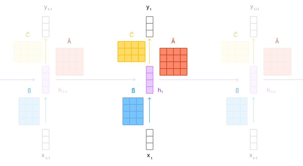 T =len(x)h[0] = B_bar[0] * x[0] # This is a vectorfor t inrange(T): h[t] = A_bar[t] * h[t-1] + B_bar[t] * x[t]