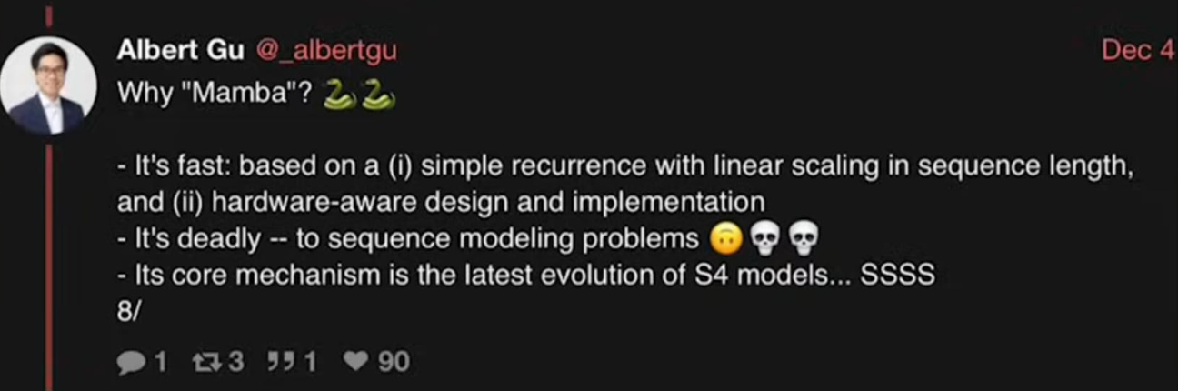 I’d just like to add that I found the line of research by Albert and Tri extremely inspiring. It’s super cool that such talented people thinking of new approaches to solve temporal series problems (instead of micro-optimzing the transformers). I like to see the results of combining ideas from so many fields: control theory from SSMs, function projections from 🦛, parallel computing and hardware optimization from 🐍