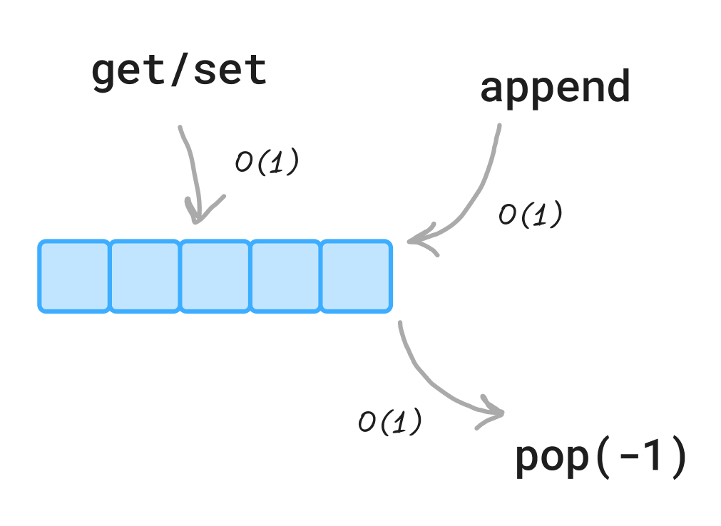 They call it list, but it is implemented as a dynamic array. Meaning that the append operation presents constant amortized time: When needing to relocate it’ll take