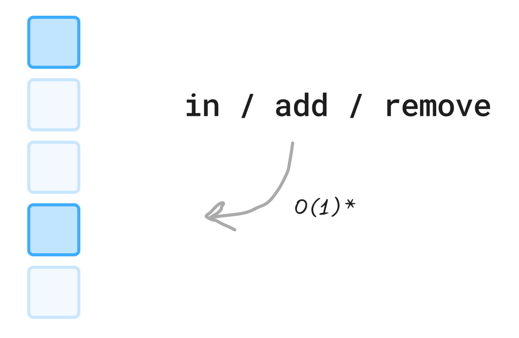 They are implemented as hash tables. Meaning that there is a collision risk and a worst-case scenaro of